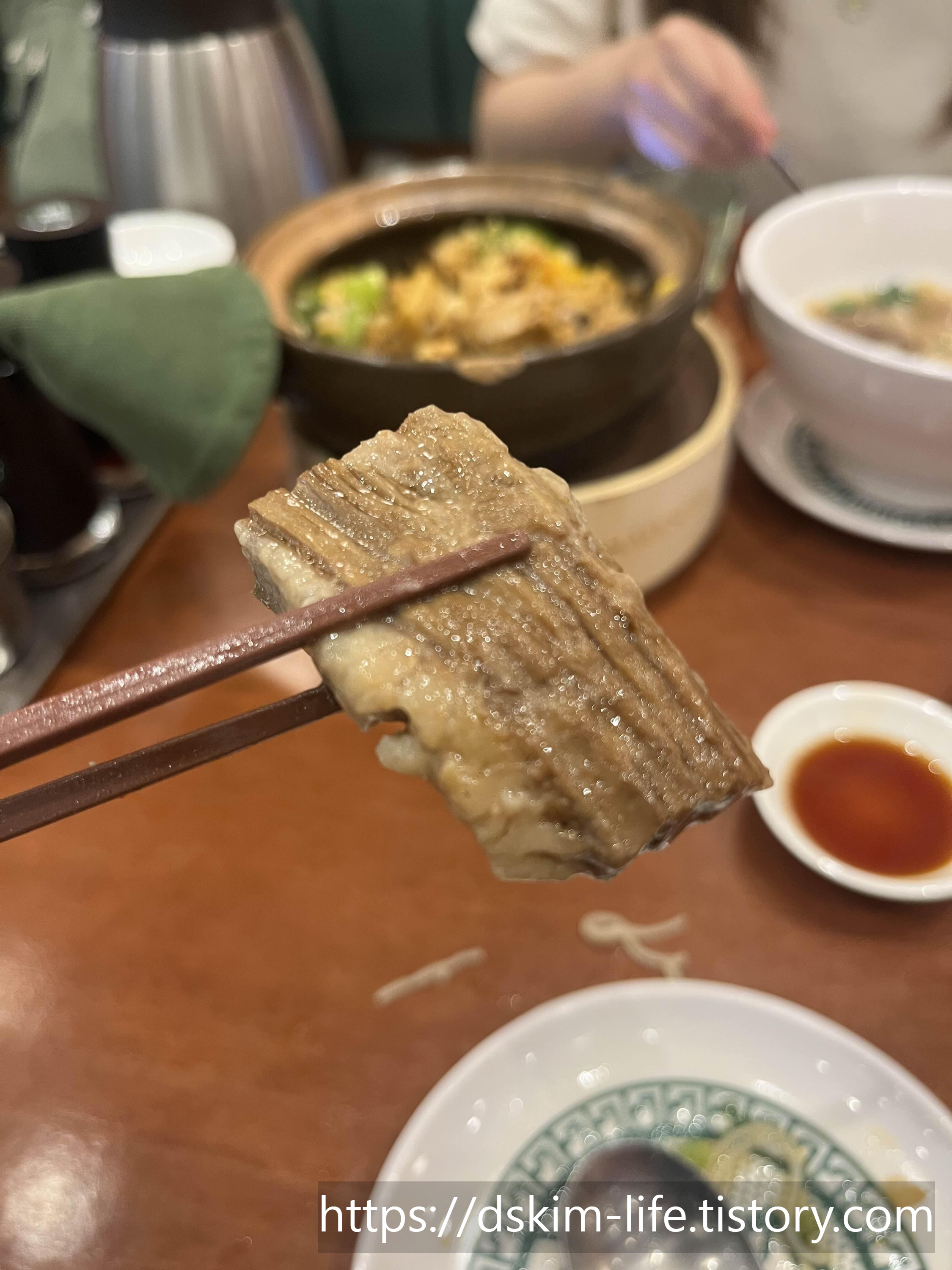 맑은 우육면에 있는 고기도 이렇게 먹기 전에 사진 한 장 찍었네요. 고기가 먹어보니 식감이 너무 좋더라고요. 입안에서 녹습니다. +ㅅ+